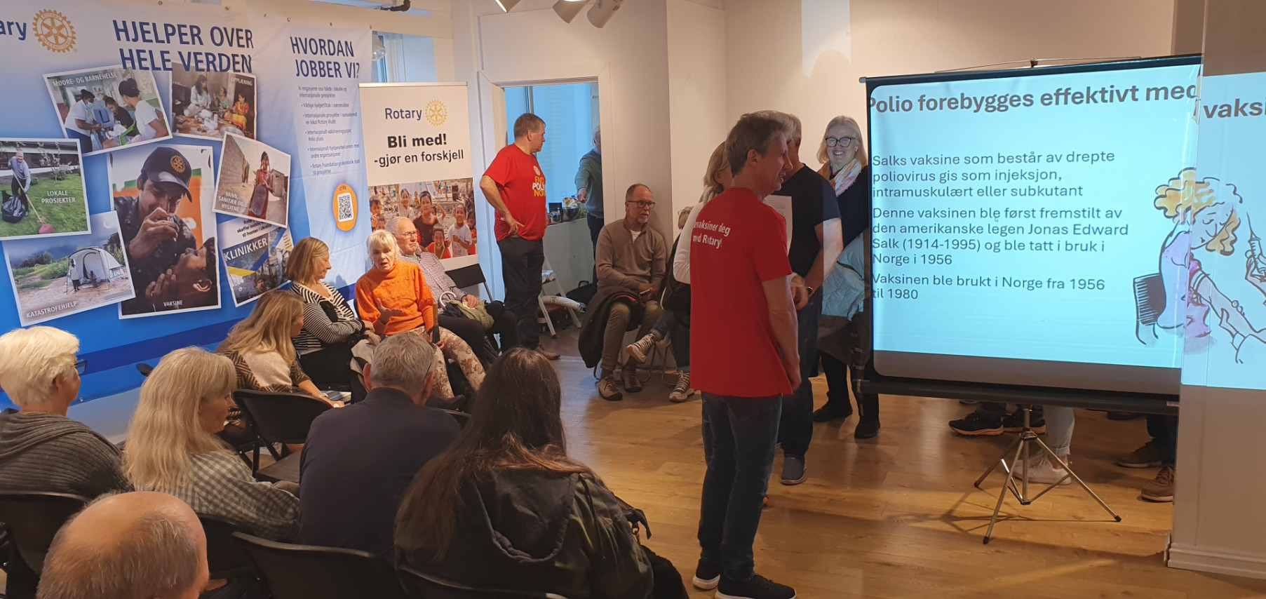 Neste 500 personer fikk gratis revaksinering med Boostrix-polio vaksinen mot difteri, stivkrampe, kikhoste og polio som bør gjentas hvert 10.år. Stor stemning hos både medlemmer av de 8 Rotaryklubbene som sto for arrangementet og de som ble vaksinert